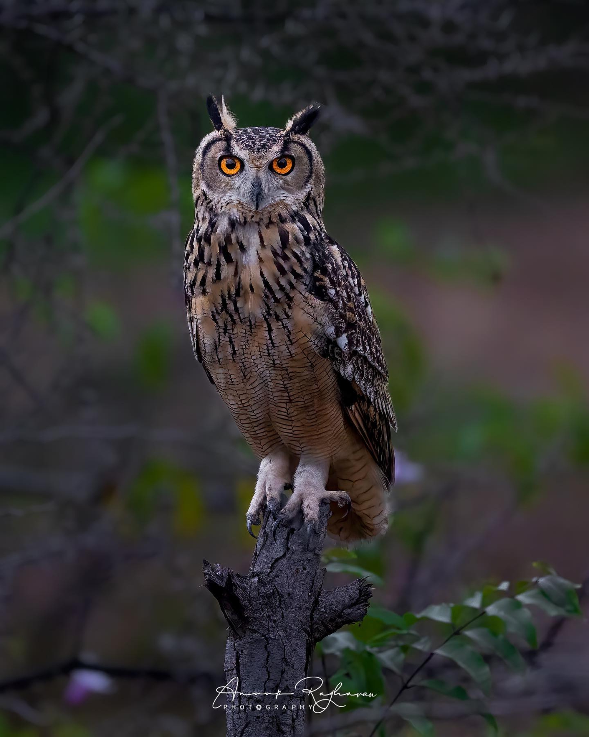 Voedsel: Bengaalse oehoe's jagen meestal vanaf een baars, maar zullen ook lage foeragerende vluchten maken om op prooien te duiken. Ze jagen voornamelijk op ratten en muizen, maar nemen ook vogels mee tot de grootte van pauw. Ze eten ook reptielen, kikkers, krabben en grote insecten. |