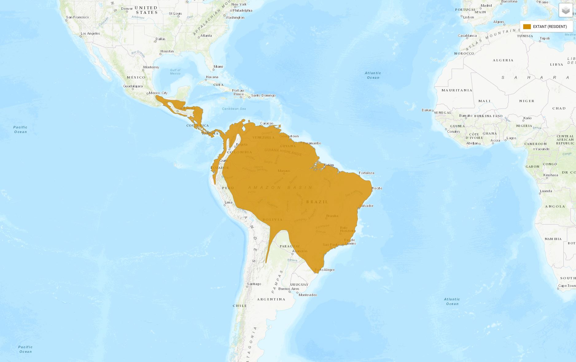 Aanwezig (inheems) - Extant (resident): Argentinië; Belize; Bolivia, Plurinationale Staten van; Brazilië; Colombia; Costa Rica; Ecuador; El Salvador; Frans-Guyana; Guatemala; Guyana; Honduras; Mexico; Nicaragua; Panama; Paraguay; Peru; Suriname; Trinidad en Tobago; Venezuela, Bolivariaanse Republiek |